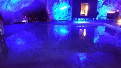 「青の洞窟」と呼ばれていますが、青色にライトアップされているだけのような(笑)