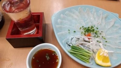 ふぐ刺しと日本酒をいただいて、早々に退散。