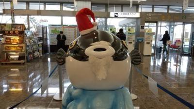 山口といえばふぐ。空港内にも大きなふぐのオブジェがありました。クリスマス近かったため、サンタクロースの帽子をかぶり、髭まで生やしていました(笑)。