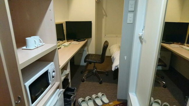 部屋に入った瞬間、狭い!?って思ったけれど、まぁ、それなりに快適に過ごせました。お部屋にアメニティらしきものは何もないかった記憶がありますが、フロントで化粧水などのセットをいただけました。