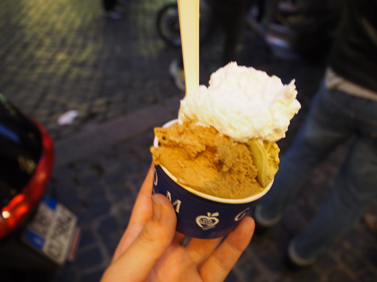 人だかりが気になってこのお店のジェラートを購入。ローマの街を歩きながら食べるジェラートは格別です。グロムのジェラートはコクがあって、とても美味しかったです。3種類盛り付けてもらいましたが、飽きることなく食べきりました。ピスタチオは特におすすめです。