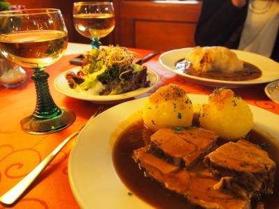 白ワインと焼き豚、ロールキャベツを頼みました。メインもおいしかったですが、付け合わせのクヌーデルにハマりました。他のお店でも食べましたが、ここのクヌーデルが1番美味しかったです。そして、白ワインがびっくするぐらい飲みやすい!ぜひ飲んでみてください。