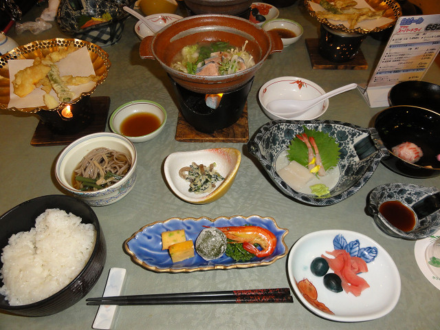蟹などのオプションを追加しない夕食は、天ぷらや石狩鍋もありましたが、もう一品、何かあればと思いました。味もこれはと思うものなし。朝食は和洋バイキングで夕食より食べるものがありました。ロビーにはコーヒーのサービスもあり、阿寒湖も良く見えました。