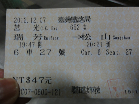 瑞芳から松山駅まで利用、瑞芳駅の改札はホームにありました。列車は座席指定でしたが、席には先客が寝ていたので仕方なく空席に座りました。その席がまた乗って来た人の席だったので移動しましたが、乗った列車の座席指定は名目だけの感じがしました。窓口で切符を購入しましたが、悠遊カードの利用も可能の区間とホームの改札で知りました。列車の遅れなど放送もなく、ホームや駅の掲示板で確かめる感じです。台北から鶯歌にも乗りましたがこちらは普通の改札でした。悠遊カード利用で割引あり手間いらずでした。