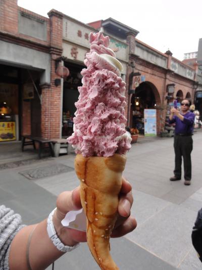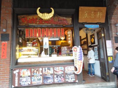 三峡老街の名物に「牛角」があります。その名の通り形は牛の角に似ています。一見、小型クロワッサンかと思いましたが少し硬めのパン。一番人気は老街に入る手前にある「金三峡牛角」ですが、ガイドさんからアイスが美味しく、しかも牛角にアイスを入れてる人気店として「康喜軒」を紹介されました。店舗は老街の中央付近にあり、牛角にたっぷりアイスを入れてくれました。牛角とアイスの組み合わせも新鮮で美味しかったです。