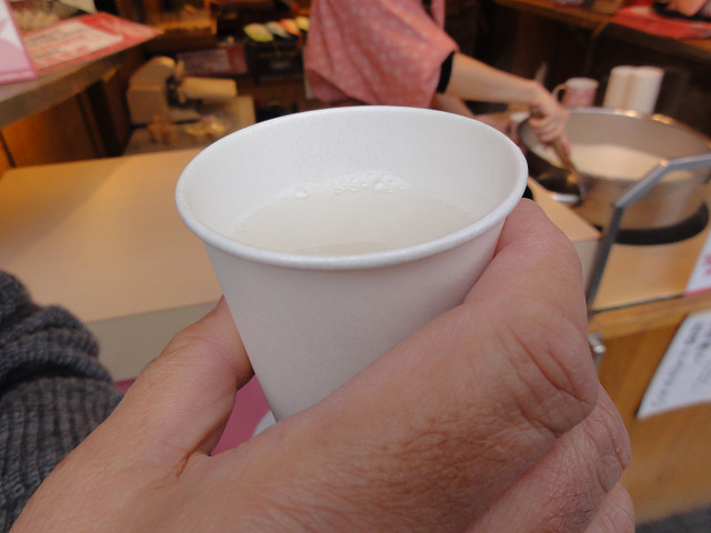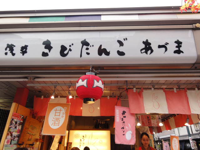 仲見世通りにある「きびだんご」と「甘酒」のお店です。寒かったので甘酒を飲みましたが程よい甘さで美味しかったです。当たり前のことかもしれませんが、甘酒を渡す時にお店横で飲むよう、周辺を歩かないよう注意を受けました。そういえば食べ歩きしてる人を見かけませんでした。