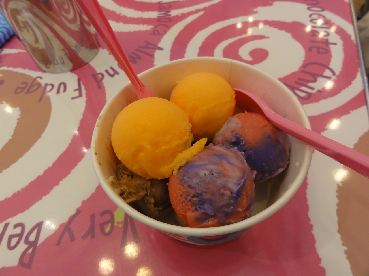 平日の午前中で店内に客は数人、入るとすぐ試食のアイスを勧められました。アイスクリームのみ食べることにして、平日限定のポップ8を注文、4種類のアイスが2個づつ入ったものでカップで¥430でした。選んだ4種類はどれも個性的で美味しかったです。