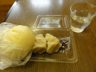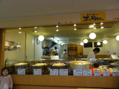 3個、熱々をその場で食べられます。使用してる豚肉は「和豚のモチ豚」ということです。ホタテとエビ焼売、あんまんを食べました。あんまんは特色なく普通でしが、焼売は其々風味もあり美味しかったです。隣の子が食べてる肉まんも美味しそうでした。- 旅行時期