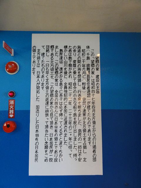 納沙布岬の碑の正面に施設はあります。北方館は島の歴史的背景がわかる文書や島に生息する動物を展示、解説付きの無料望遠鏡も設置されています。島にある建物等がはっきり見えます。隣の望郷の家は、退去を強いられ引き揚げてきた方達が建てたもので、島のジオラマや当時の生活の様子、生息する魚類など見ることが出来ます。北方領土は、日本固有の領土だという意味が遅ればせながらやっとわかりました。