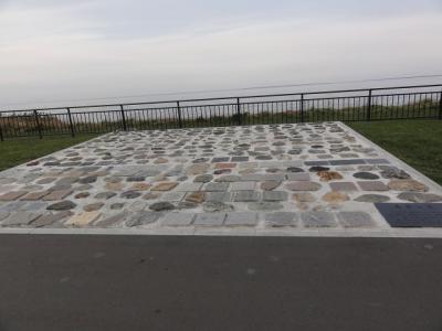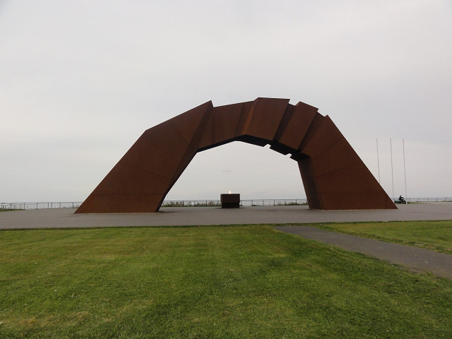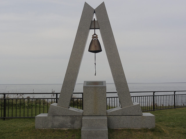 納沙布岬の碑に行く前に、先ずこのモニュメントがあります。とても大きなモニュメントで北方領土の返還を祈念し「四島の架け橋」として建てられたそうです。側には「祈りの火」が灯っていました。この他にも日本全国の石を集めた「希望の道」や「鐘」、「石碑」等がありました。