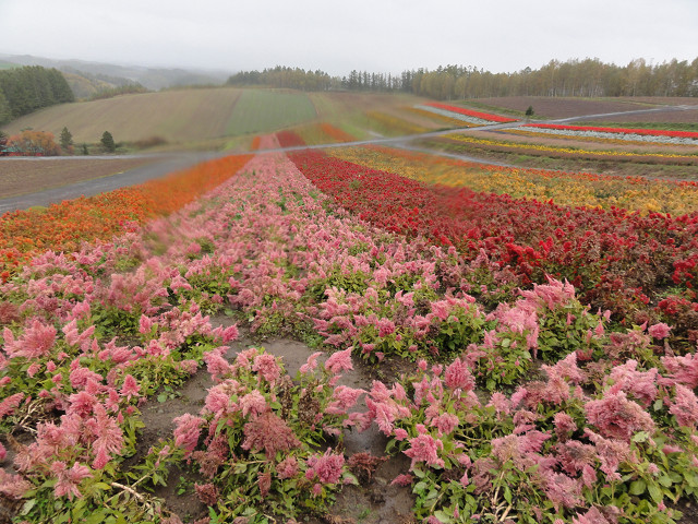 そろそろ終末の時期の訪問でしたが、手入れされた花畑は色鮮やかでした。最盛期に再訪してみたいところですが、混雑してるでしょうね。花のない緑の丘も目に優しい景色でした。夏の花と思ってたダリアも手入れが良いのかまだ咲いていました。