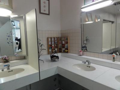 トイレ休憩用のサービスエリアで、建物内には道路情報が見られる案内板が設置されていました。トイレも手作り雑貨で飾られ、手洗いには珍しく木製の椅子も1個ありました。温かい雰囲気があるトイレです。統計でもとっているのか、トイレのドアにカウンターがあり利用回数がわかるようになって居ました。