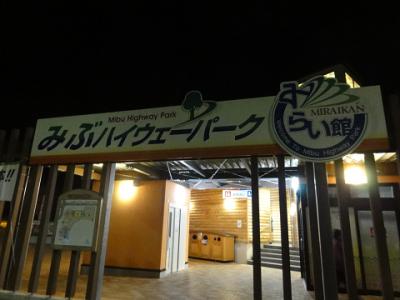 看板を見て「みぶハイウェーパーク」と知りました。とても静かで、夜7時を回ってたと思いますが、人の気配がなく、バスから降りた私達のみがお客になりました。