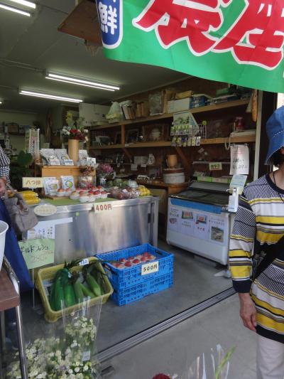 猿橋の手前、駐車場の前にある素朴なお店です。地元の野菜や果物、調味料、お菓子、キーホルダーなどのお土産もありました。梅や桃、朝採りのとうもろこしが新鮮でした。他にお店もないのでツアーの皆さんが立ち寄り賑やかでした。