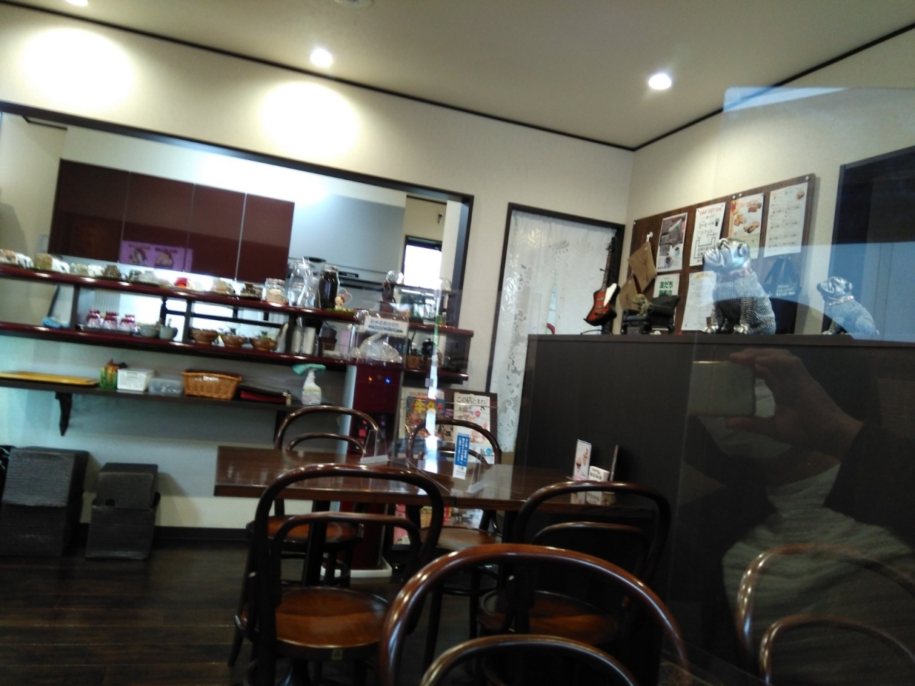 踏切近くにお店あり、店頭に駐車場もありますがちょっと停めにくい感じです。外からは暗いお店のイメージでしたがとても明るかったです。ランチはパスタ、サンドウィッチ、スープの3種類できのこのパスタを食べましたがあっさりしてました。デザートはパフェやシフォンケーキ、ゼリー等あるのでコーヒーとデザートでの利用がいいかなと思いました。