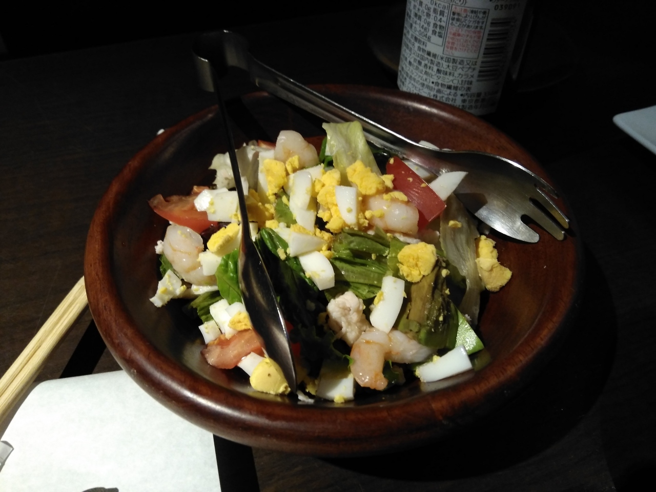 夕方,開店早々なら混雑なしと行きました。個室風の席は落ち着いた感じで、注文はタッチパネルでした。サラダや焼物、他注文、パネルにあっても現在は注文出来ないものも何品かありました。久々、アルコールも飲みました。