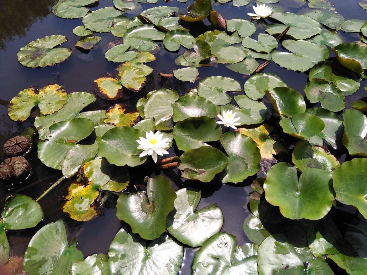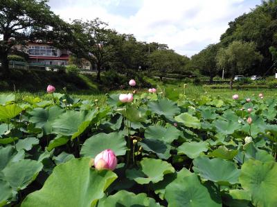 6月中旬アヤメの季節が終わると、小さなため池の一つで白くかわいい睡蓮が見られます。蝮に注意の看板あり、気をつけなくちゃと思っていたら、本当に池に入っていく蛇を見ました。調べたらヤマカガシという毒蛇でした。別のため池には蓮が植えられていたのですが、花はまだで、7月中旬に行くとピンクの蓮が開花してました。暑くて花だけ見て帰りましたが、人もいないのでマスクなしで周辺散策できます。