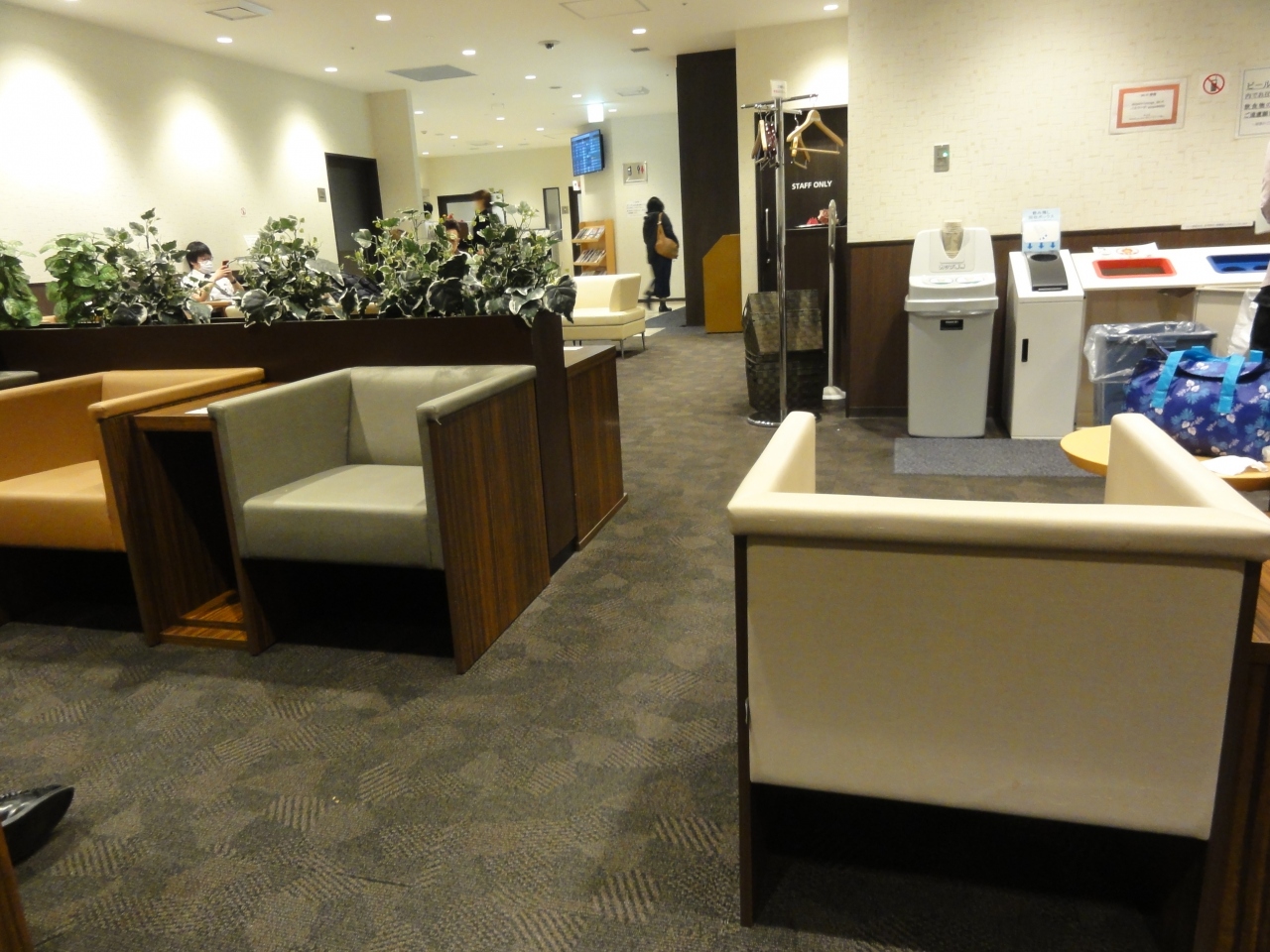 一階北側のジェットスター近くにあります。搭乗ゲートへ距離はありましたが、無料でちょっとひと休み出来るので利用しました。広いラウンジで、入口でソフトドリンクと缶ビールどちらかを選択します。座席近くのテーブルには無料Wifiのパスワードもあります。