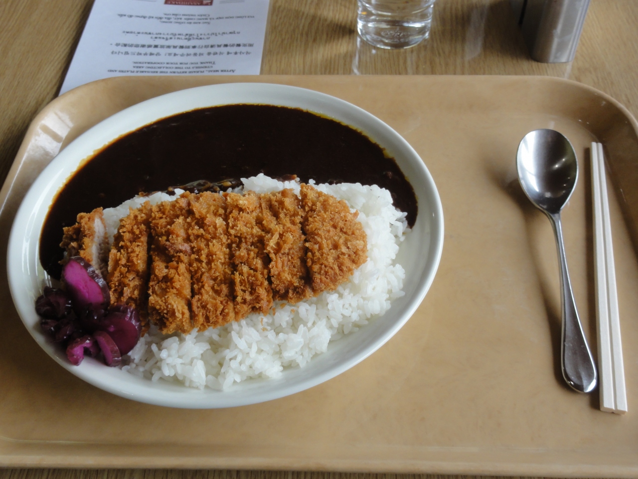 ロープウェイが15分間隔で混雑した雰囲気もなかったので、昼食を先に食べることにしました。食券購入式、セルフサービスの広い食堂、時間も遅めっだったので閑散としてました。カツカレーを食べましたがボリュームいっぱいでした。連れが豚かつ入りラーメンを食べてましたがこちらもボリュームいっぱい、メニュー豊富な食堂でした。