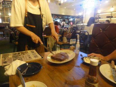 生牡蠣、厚いステーキと印象良く、今回は3人で行き、ワイン他アルコールの飲み放題を付けました。お気に入りの生牡蠣、ポンドステーキ、チョップドサラダ、生ハム、ラザニアを注文、ワインやビール、チューハイ等色々飲んでみました。眼前調理のサラダやステーキが楽しかったです。弟が貯めていたポイントも以前は商品交換のみだったそうですが、支払いに利用出来たので予算も安くすみました。ポイントや会員価格あったり、地元客中心のお店と思えました。