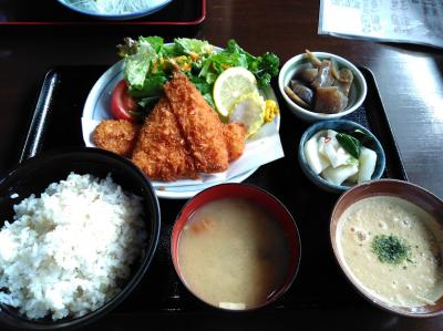 ランチで利用、テーブル、小上がり、カウンターとあり満席でした。お刺身中心ですがアジフライ+イカフライ、カキフライ、鶏の唐揚げの定食もあり、価格帯は¥1650~¥850でした。アジ、イカフライの定食を食べましたが、フライは揚げたてサクサク、麦飯にとろろいも、煮物、漬物、味噌汁が付きボリュームいっぱいでした。味噌汁はもう少し薄味でもいいかと思いました。お刺身も厚く、大きく食べごたえありそうでした。