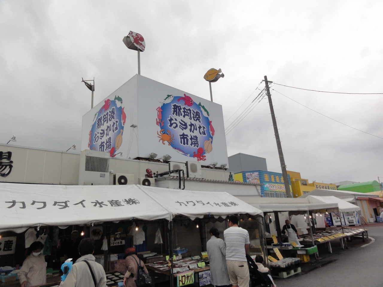 那珂湊全体をおさかな市場と思ってましたが、よく見ると看板下の建物の周りは、魚の一夜干しや開きの専門店、しらす干しやワカメ等売る小さな店が並んでました。建物の中に入ると海鮮丼やお寿司など食べられる飲食店でした。平日で時間も15時近ったせいか休んでるお店が目立ちました。活気があるのは週末かもしれません。