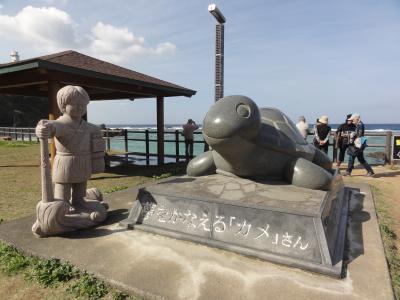 ツアーで案内された最初の観光地です。笠利灯台へ案内されるはずが周辺道路も立入禁止ということで、ここから灯台を眺めました。出来たてのような子供の浦島太郎と触れば願い事が叶うという亀が居ました。他所でも浦島太郎が乗った亀に触ったことを思い出しました。海中公園だったんですか?滞在数分で済みました。