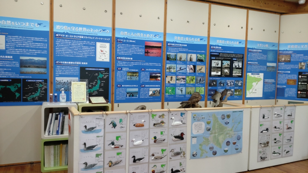 三笠から札幌に戻る途中、トイレ休憩も兼ね立ち寄りました。宮島沼の鳥類や生物、環境保全の調査研究とマガンや白鳥等渡り鳥の観察基地のような施設で、9月下旬~10月上旬は5~6万羽のマガンが飛来するようです。展示室には鳥の剥製や写真、地域活動紹介のパネルがありました。マガンシーズンには、早朝のトイレ開放もあるようです。