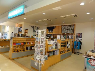 売店コーナーの奥にあります。食品コーナーには大漁旗が貼られてますが、蟹など生ものはなく、だし昆布や、函館の近くにある道の駅「なとわ・えさん」で売られている昆布巻き、鮭とば、いかすし、松前漬等が冷蔵ケースにありました。物産コーナーには、アイヌ民族の衣装タペストリーやクッション、Tシャツ、袋物、木彫りの人形、絵葉書等、見やすく並んでました。他の売店とは違う品揃えです。