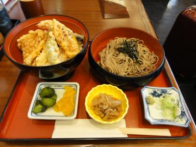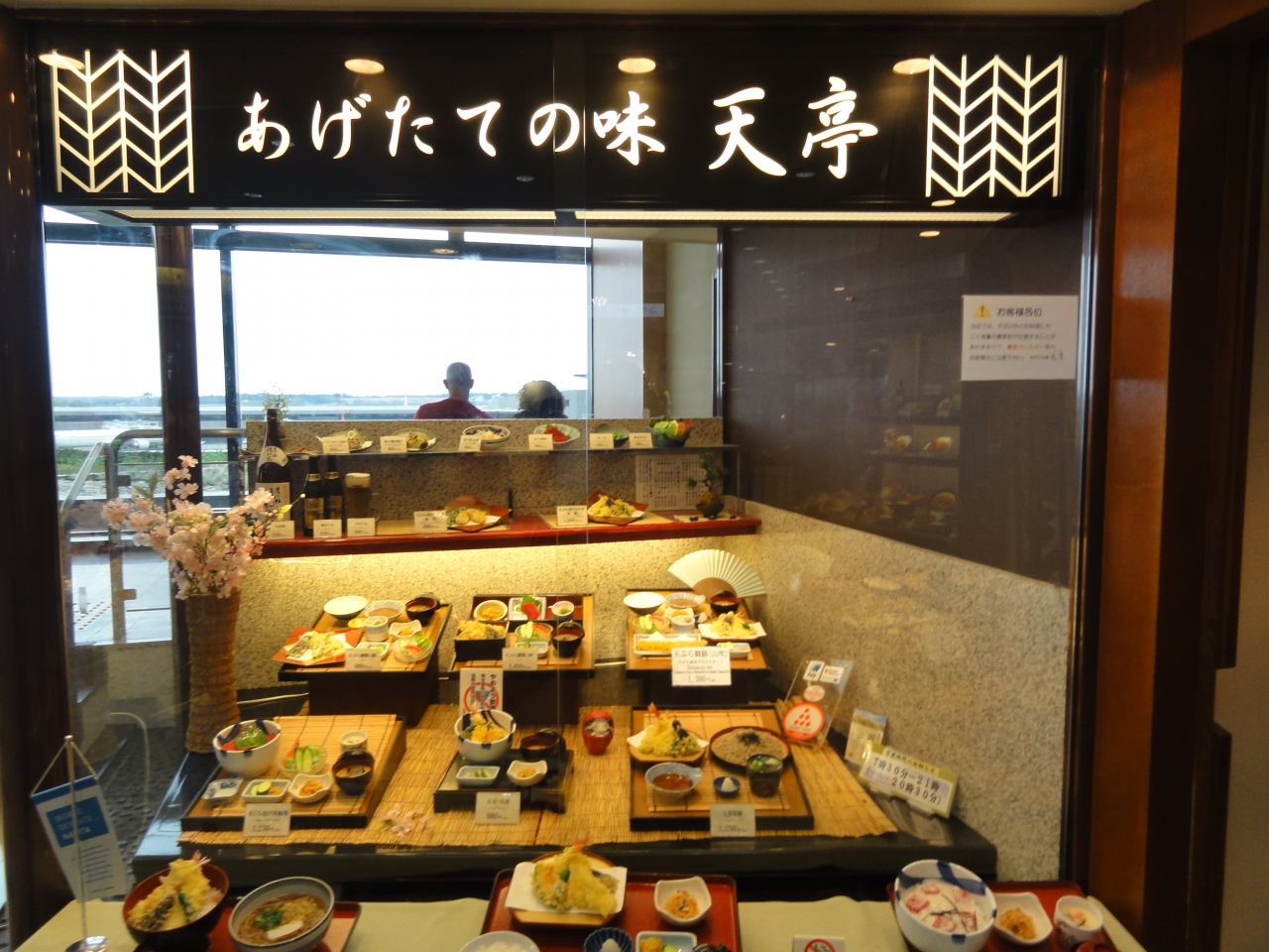 ランチセットの「天丼+お蕎麦」¥980を食べました。窓側に座ると駐機してる飛行機や離発着の飛行機が見えます。サンプルと違って天ぷらをカラッと揚げるのはやはり難しいようです。若い方が「天丼のたれは多めに」と注文、そんなリクエストも出来るのかと感心してましたが正解でした。少し物足りなかったです。冷たいお蕎麦にしましたが、そちらはさっぱりして美味しかったです。