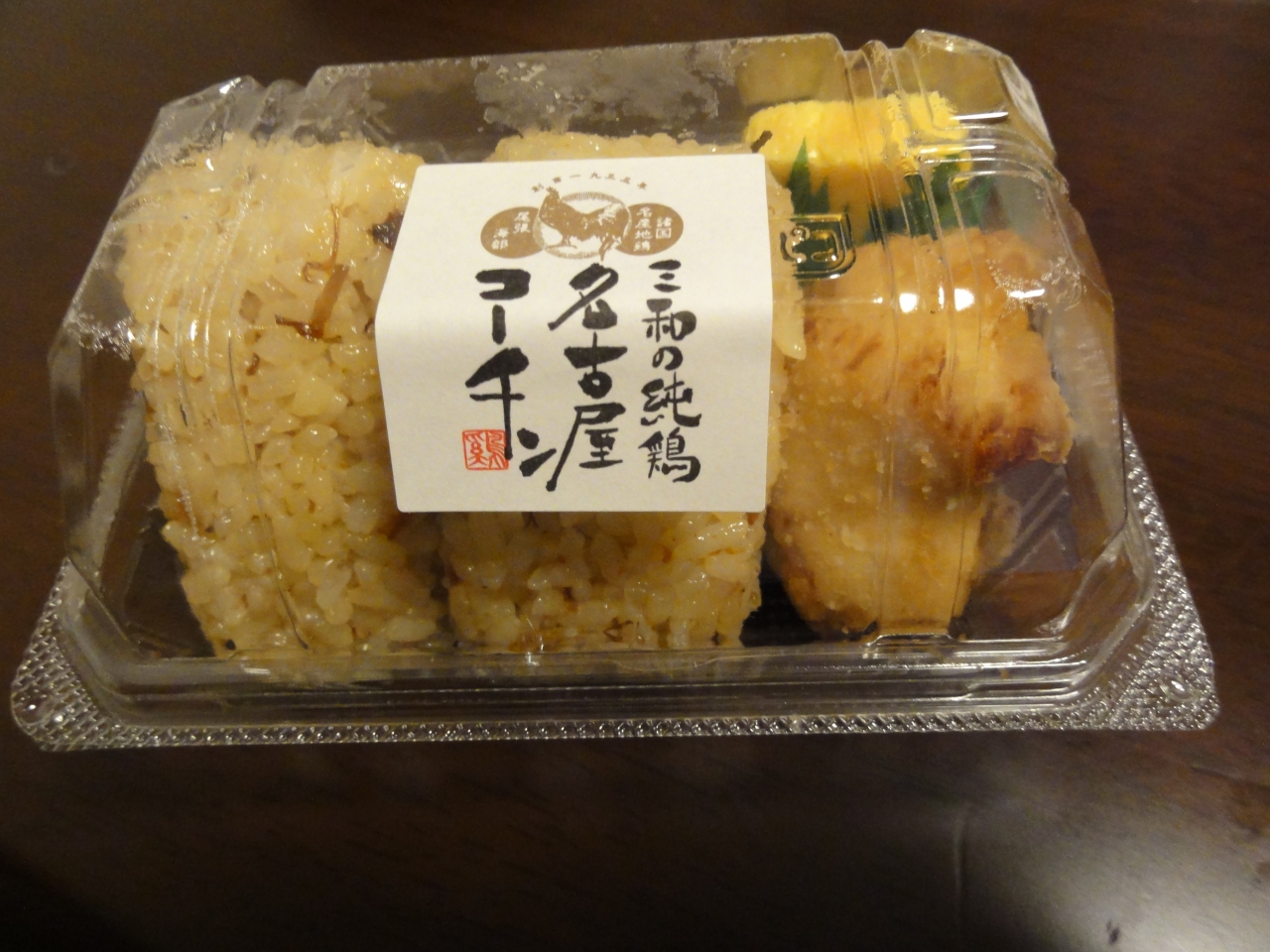 名古屋コーチンを使った鶏のから揚げや、お弁当等の販売と親子丼等食べられるカウンターのコーナーもありました。お店はちょうちん横丁にあります。鶏飯のおにぎり2個、唐揚げ1個、卵焼き一切れのお弁当を買いましたが、鶏のから揚げが美味しくてびっくりしました。唐揚げだけでも売っていたので買えば良かったと思いました。