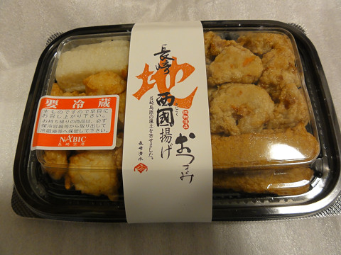 長崎空港には、長崎周辺の名物が集合してるかと思いますが、蒲鉾も特色あるものがありました。少しづつ色々入ったものがないかと探した時、見つけたのがおつまみとしての「長崎西国揚げ」でした。諫早の長崎清水のものでした。スティックのさつま揚げや揚げボールなど22個も入っていました。そのままじゃなく、おでんにして食べましたが、しゃきしゃきした食感が新鮮で美味しかったです。蒲鉾にしゃきしゃきという表現はおかしいかもしれませんが娘も同じことを言いました。孫も良く食べました。子供は正直です。