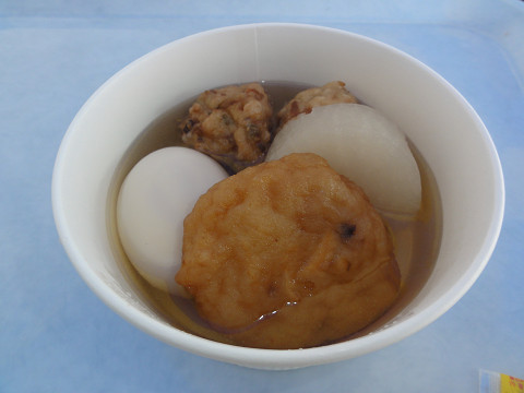 ハウステンボスから空港へ高速船で行く為、フリーゾーンで時間調整、市内で食べ損なった「おでん」をハウステンボスの小さな店で食べました。トビウオからとった「あごだし」と「かんぼこ」の組み合わせは、長崎名物づくしで美味しかったです。ビニールハウスの中は寒々してましたが、帰る前におでんが食べられて嬉しかったです。空港で迷わず「かんぼこ」を買って帰りました。