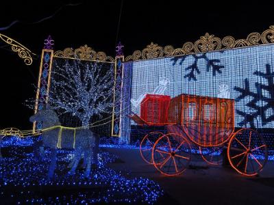 ガーデン一面に敷き詰められた650万級のイルミネーションは、本当に圧巻の光景でした。見てる間に色が変わり、夢の世界の感じです。光の宮殿の方も綺麗でしたがコンパクトにまとまった感じでした。パレスハウステンボスの裏側に会場があり、ちょっと分りにくかったです。パレスハウステンボスの前ではファイヤーショーがあり思わぬところでのショー見学は楽しかったです。園内のイルミネーションを上から見ようと観覧車にも乗りました。寒かったですがハウステンボスに来て良かったと思えました。