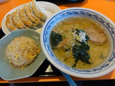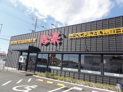 牛久市内の珍来で一番新しいお店です。住所は牛久市ひたち野東2-20−1、最寄駅はひたち野うしく駅です。黒い外観は入口に回らなければラーメン屋さんとは思いません。店内は黒とオレンジが基調でカウンター、テーブル、小上がり席と一般的な造りですが通路が少し広いような気がしました。小上がりも子連れに嬉しい広さでした。半チャーハン、ラーメン、餃子のお得なセットがあり、醤油、塩で注文してみました。
