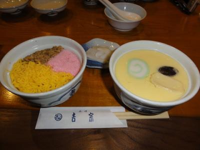 機内でガイドブック中の丼サイズの茶わん蒸しを見て、食べたいなあと長崎に飛びました。街歩きの中でお店を見つけ迷わず入りました。外観は古めかしい感じでしたが、案内された1階の席は新しかったです。三色丼+茶わん蒸しのセットを食べましたが、久しぶりにたっぷり茶わん蒸しが食べられました。三色丼もふわっと優しい味で美味しかったです。ガイドブックに載るだけの価値はありました。