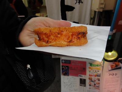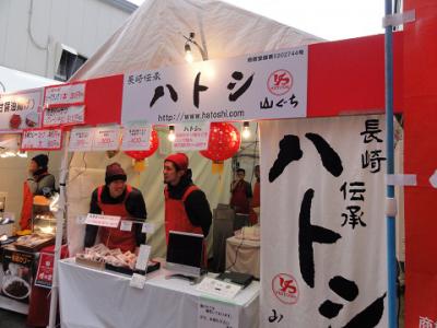食パンに海老のすり身を挟んで揚げたものを「ハトシ」というそうです。ガイドブックにあった長崎伝承の「ハトシ」を運良く食べることが出来ました。新地中華街付近のランタンフェスティバルに紹介されたお店が出店していました。海老の食感が少し残り、からりと揚ったハトシはとても美味しかったです。チーズ入りも食べてみましたがそちらも美味しかったです。この仕出し屋さんは福山雅治のコンサート中、楽屋にお弁当も納入してたそうです。美味しいものが多いお店なのでしょう。