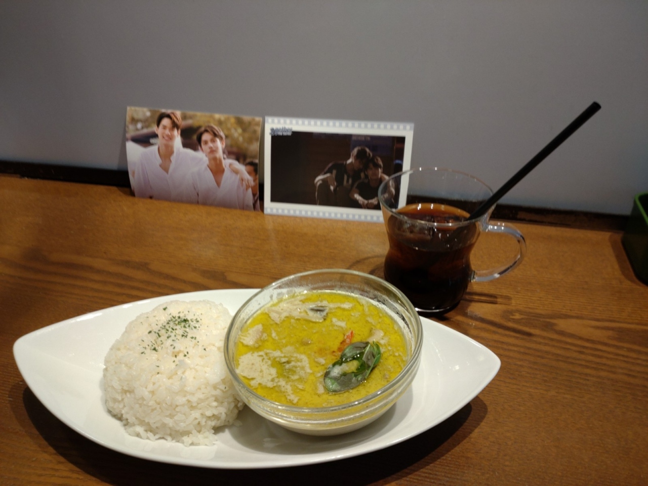 人気のタイドラマ2getherとのコラボでドラマ衣装が見られる、入場者のみグッズ購入が出来る等、期間限定イベントに出かけました。入場も予約制で電子チケット購入。当日券もありましたが入場は予約者からで滞在は飲食、写真撮影含め80分、混雑ないようスムーズな対応でした。グリーンカレーとアメリカーノ、テイクアウトドリンクで雰囲気楽しみました。