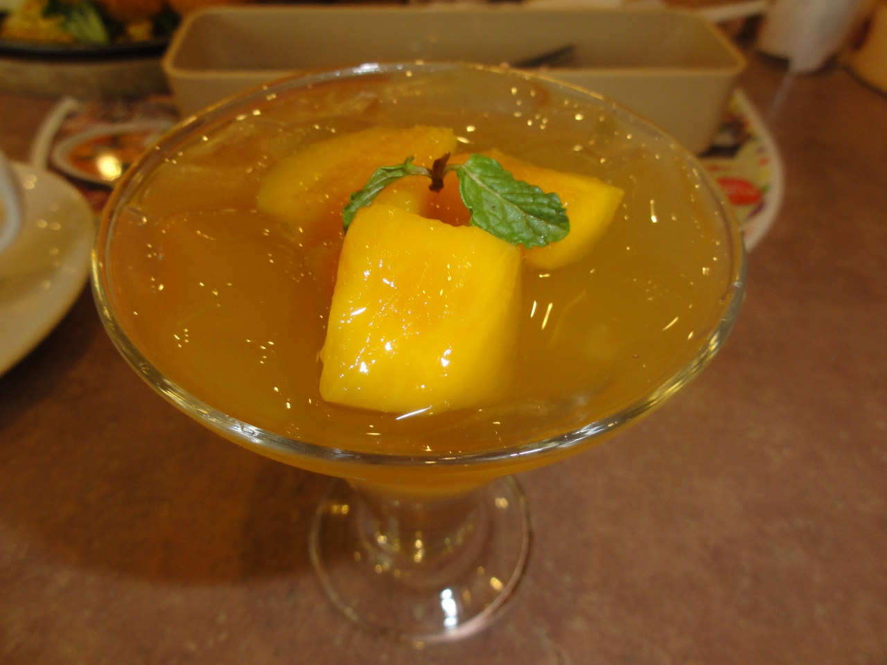いつの間にか外も中も綺麗にリニューアルしてました。夏休み中だったせいか、昼時は駐車場も一杯でした。お店の中は半分位喫煙席です。友人は食事、私はハーフ&ハーフのマンゴー入りゼリーとドリンクバーを利用しました。