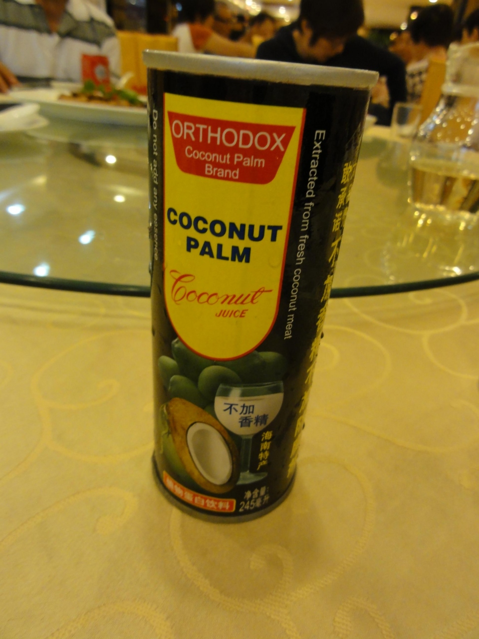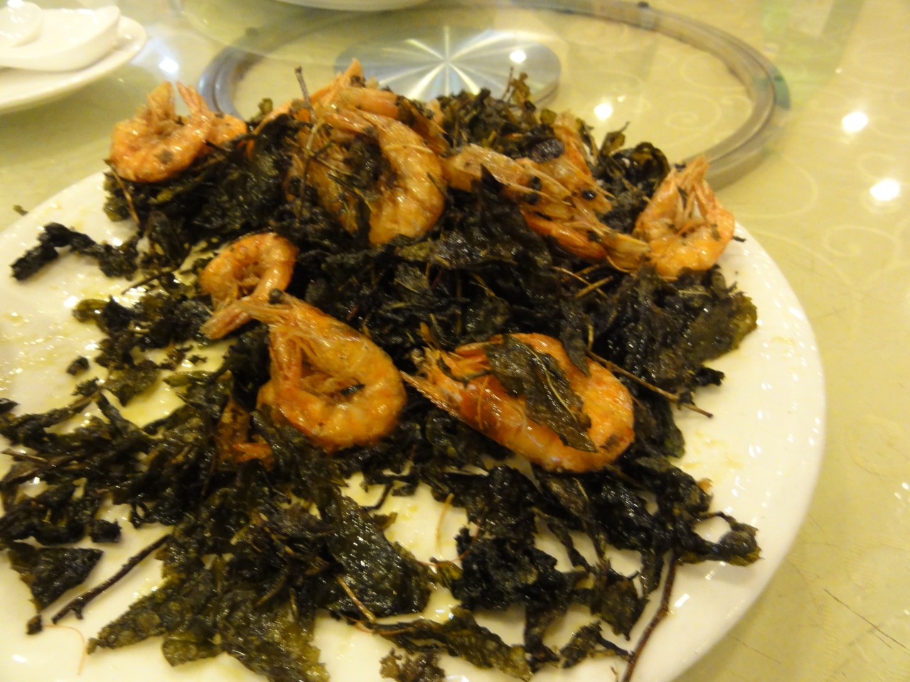 格安ツアーについた夕食で訪れたレストランです。日本人だけじゃなく中国からのツアー客も利用していました。地元の大きな旅行会社の格安用御用達なのかもしれません。チャーハンやセロリの炒め物、高野豆腐の煮物、青菜の炒め物、スープ、お茶の葉で炒めたエビ等のメニューにデザートはスイカでした。印象に残ったのは、お茶の葉で炒めたエビとご当地の椰子ジュースでした。エビだけを食べるのですがまあまあ美味しかったです。