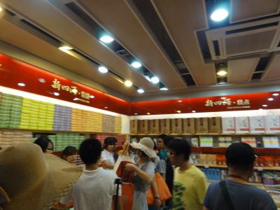 老舗のパイナップルケーキのお店がSOGO近くにあると聞き、SOGOを目指しました。宿泊した富王大飯店から徒歩で20分近くかかりました。無印良品、スターバックスの看板が目に入り、入口頭上には四角いパズルのようなカラクリ時計がありました。横浜SOGOにも同じ時計があるそうです。ついでにと覘いた1階は、化粧品と高級海外ブランド品で日本と大差ないように思いました。平日の21時近かったせいか、店内も通りも人通りは少なかったです。デパートを覘くより、スーパーの方がお薦めです。目指した「日出旅人」はSOGOの向かいの通りでかなり手前にありました。