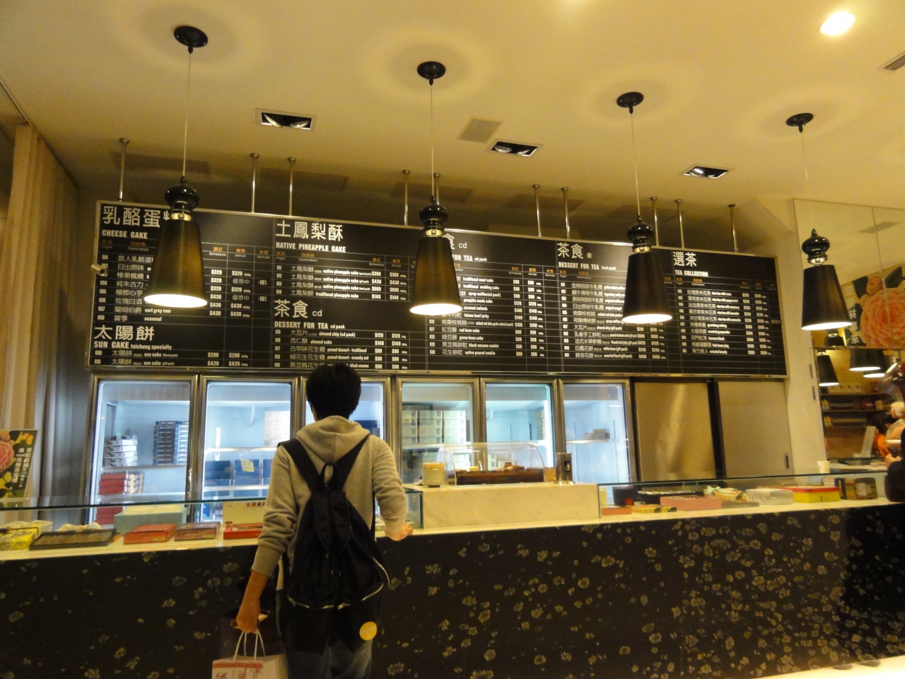 ガラス張りのとても素敵なお店で、日本のケーキ屋さんみたいですが、ショーケースの中は台湾風のお菓子とチョコ、壁にはお茶も並んでました。お菓子の試食も出来、日本語の説明書もあります。パイナップルケーキは15個位で一箱です。味も良く、包装も綺麗で、お土産、家庭用にお薦めです。- 旅行時期