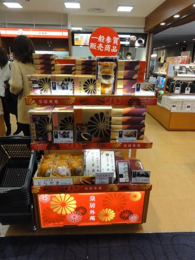 今年はコロナで中止になった天皇誕生日一般参賀でしたが、一般参賀記念のお菓子がありました。初めて見ました。きんつば、どら焼き、最中、一口羊羹と4種類あり、お土産にいいなと思いました。裏側には御用邸と銘打ったチーズケーキ、クッキー、焼き菓子もありました。