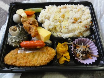 ツアーで行った土産物店の2階にあるレストラン、残念ながら食事はレストランではなく、フェリーでのお弁当になりました。卵焼きや唐揚げ、白身魚フライ、ウィンナー、煮物や和え物、漬物等、定番のおかずにウニの炊き込みご飯、サザエのつぼ焼きが入りボリュームいっぱいでした。壱岐名物のウニご飯お勧めです。