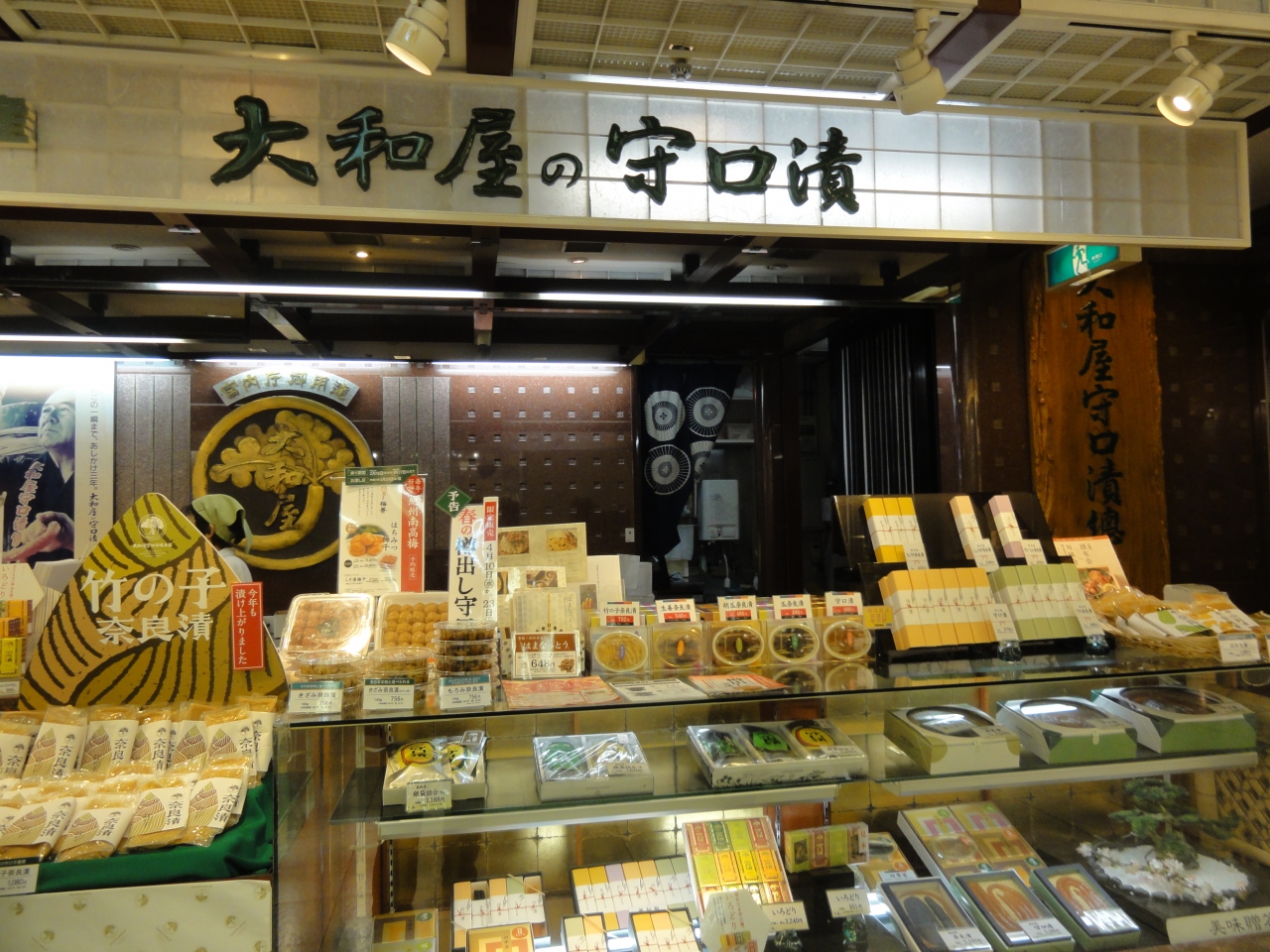 名古屋駅太閤通口からショッピングモールエスカの地下へ。老舗店舗の中にあった漬物店です。漬物苦手の私には縁のない店でしたが、名店を知る従妹は直行「食べてみたかったの」と筍の奈良漬を試食、筍をお土産に購入してました。