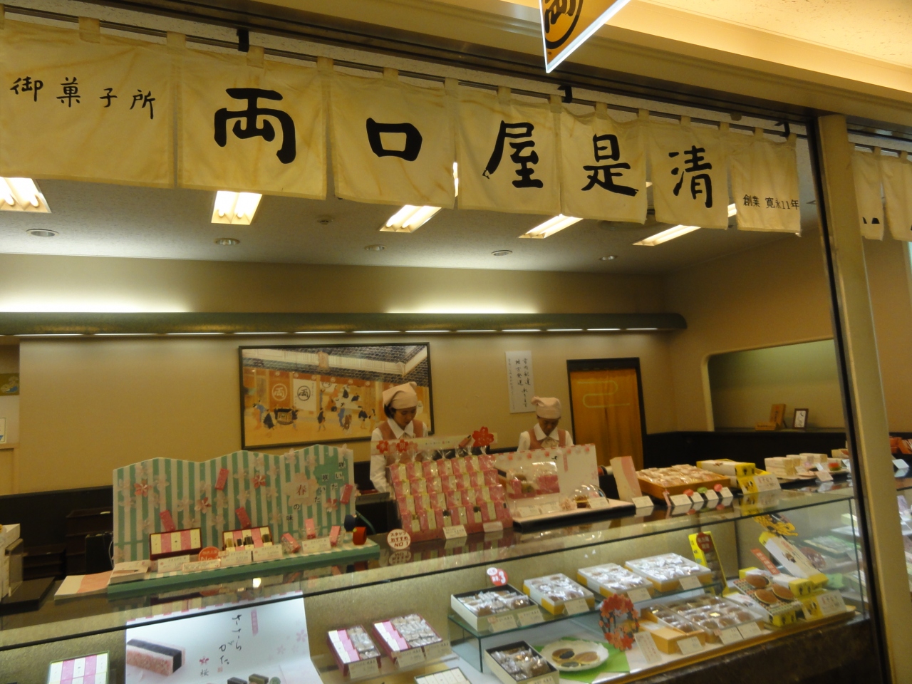 名古屋駅太閤通口からショッピングモールエスカの地下へ。ここは名古屋の老舗がお店を出してるようでした。この和菓子店も知る人ぞ知るお店なのでしょう。店名は聞いたことある位の知識でしたが、創業から380年、11代も続く和菓子店とのことです。ファンが多いのかゆったり構えた雰囲気でした。