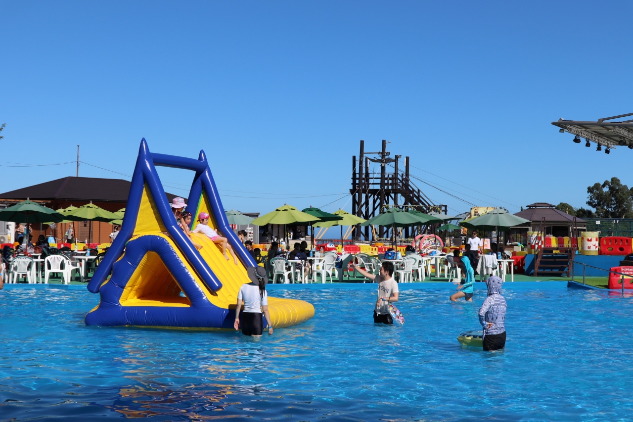 プールは大人の膝までの高さしかない浅いプールですが敷地は広く、大勢の子供がいましたがそこまで密にはならず。