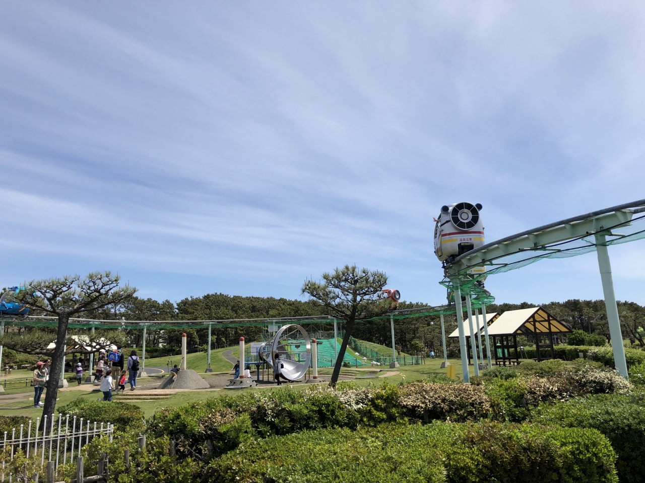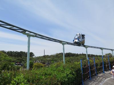 上空に配置されたレールを漕いでいくスカイサイクル(大人210円/小学生以下100円)は人気で少し並びました。ただ距離が長く、前の人を抜けないので時間がかかり、娘は最後は少し飽きていました。