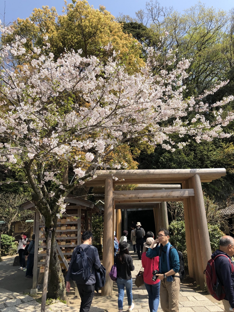 4月の初め、境内の桜は見ごろを迎え、心地の良い陽気の中で銭を洗いました。