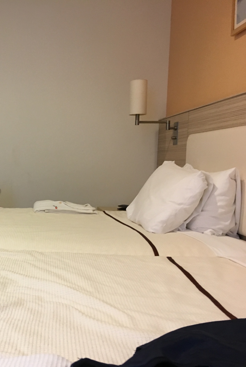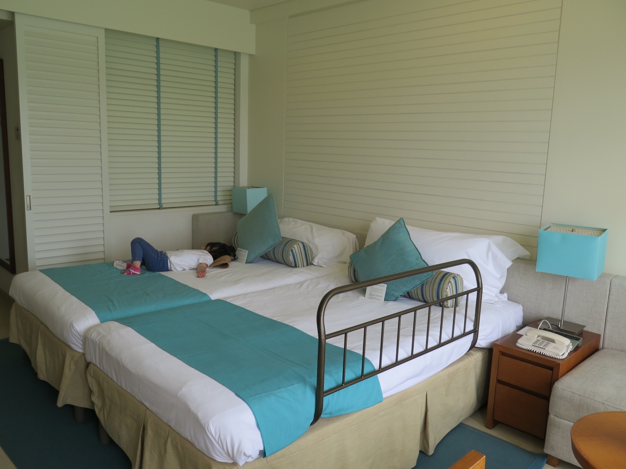 部屋はツインベッドですが、くっつけることができて2歳娘を間に挟んで安心して寝れます。